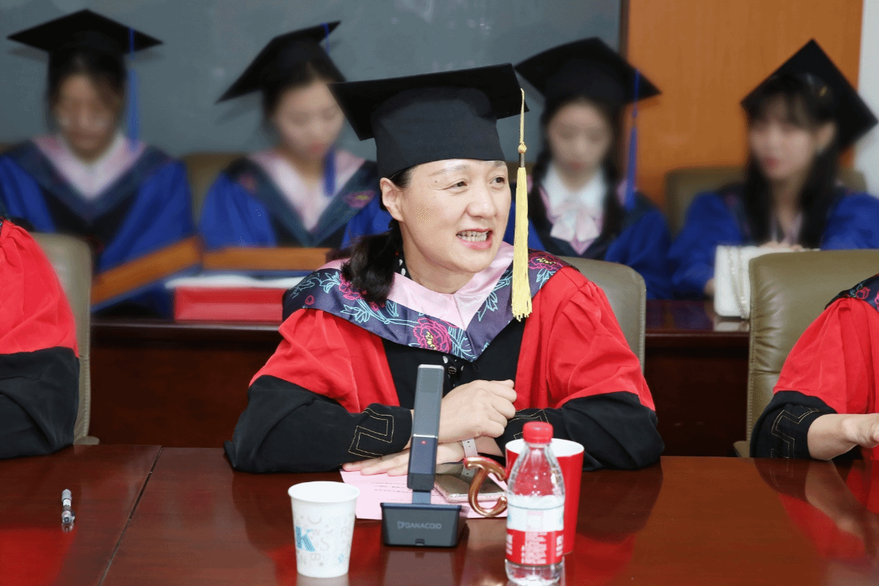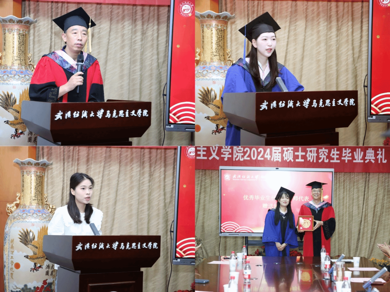 毕业生代表颜梦淇深情回顾了研究生阶段的每一个瞬间,她表示武纺马院不仅承载了她宝贵的青春记忆,更见证了她奋斗与成长的青葱岁月,她衷心感谢学院与老师们在她追求真理、探索未知的道路上所给予的无私帮助和坚定支持。站在新的人生起点上,她代表全体毕业生郑重承诺,将铭记师长们的谆谆教诲,以崇真尚美的校训为指引,脚踏实地,全力以赴,迈向新的人生征程。