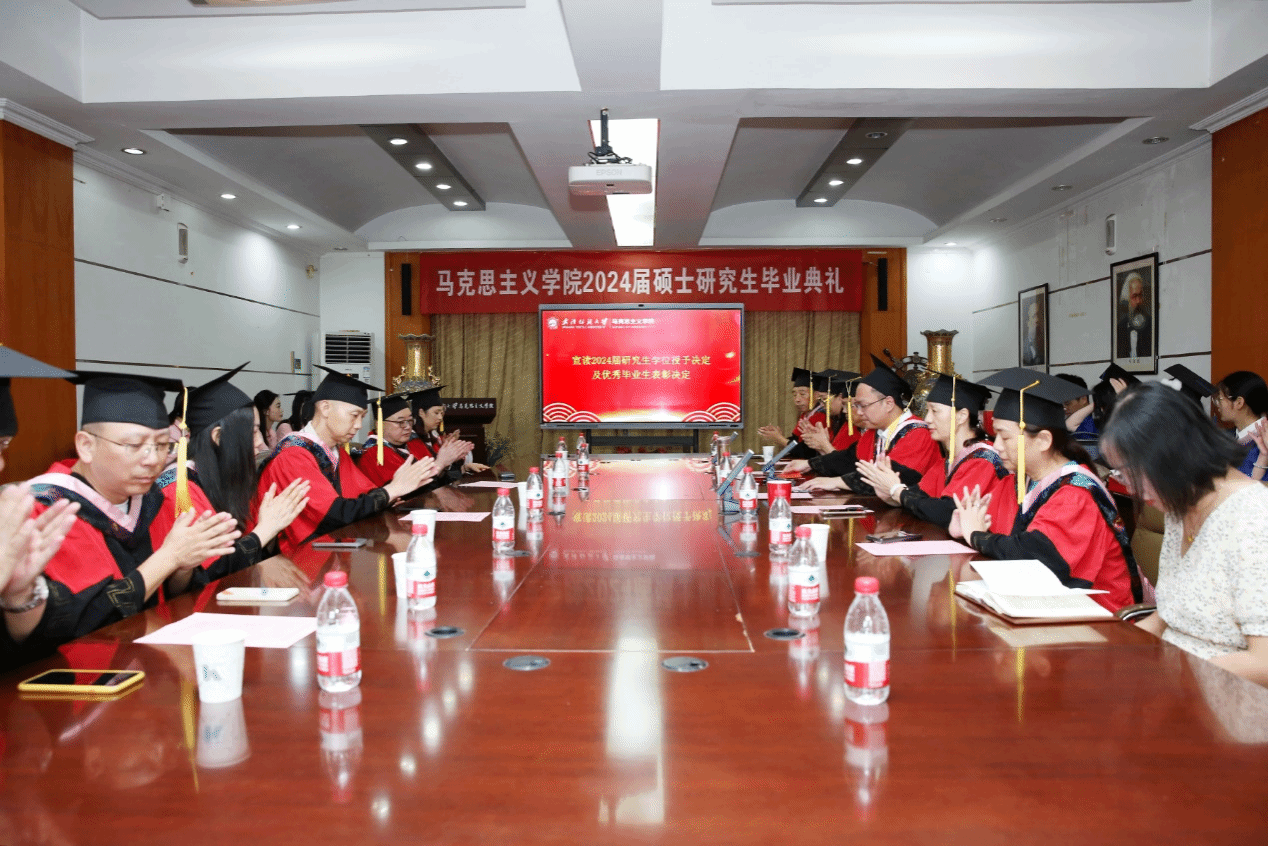 肖述剑宣读了德赢AC米兰官网2024届全体毕业研究生名单及优秀毕业生表彰决定,并为毕业生颁发毕业证书、学位证书、拨穗正冠及赠送毕业纪念品。他用习近平总书记的话深情寄语同学们:“大道至简,实干为要。”希望未来无论是在工作还是学习中,马院学子都能够秉持实干精神,将所学理论知识转化为实际行动,以实干创造实绩,以实绩书写人生华章,做一个对社会、对国家、对人民有贡献、有价值的优秀青年。
