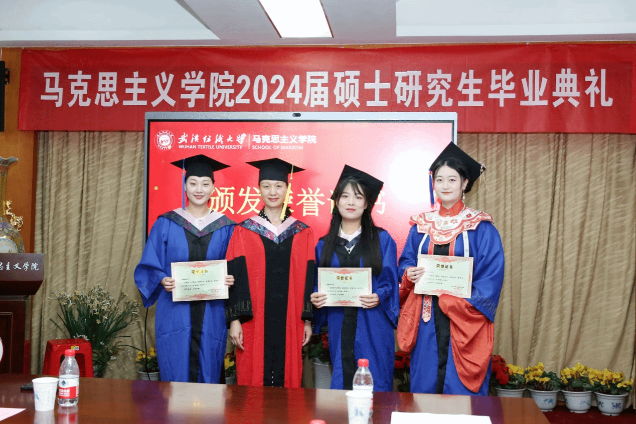 金艳教授为获评校级优秀毕业生荣誉的马院毕业生颁发了荣誉证书,并代表学院向参加典礼的毕业生们表示祝福,同时也向辛苦付出的老师、家长朋友们表示衷心感谢。她对学生们提出了五点期许:一是要思想要正派,做一个正直善良的人,保持良好道德情操,认真对待生活中的每一件事;二是要身体要健康,身体是革命的本钱,只有拥有健康的体魄,才能面对生活中的种种挑战;三是内心要坚韧,有忍耐之心,以独立坚强的姿态去体验人生的酸甜苦辣,成为生活的强者;四是工作要进取,用勤劳的双手耕耘梦想,把个人理想融入国家民族的伟大事业,在祖国不同的岗位上发光发热;五是生活要自律,培养良好的生活习惯,合理规划时间,做自己人生的舵手,牢牢把握未来的方向。最后,金艳教授寄语大家志存高远,勇于担当,守底线、明是非,做一个崇真尚美、宁静致远的美好纺大人。