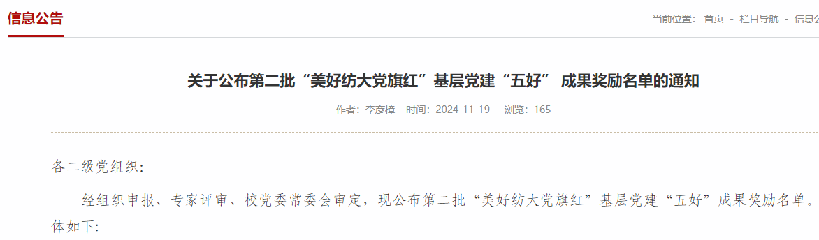 公告链接:关于公布第二批“美好纺大党旗红”基层党建“五好” 成果奖励名单的通知-德赢AC米兰官网组织部(党校) https://zzb.wtu.edu.cn/nr.jsp?urltype=news.NewsContentUrl&wbtreeid=1031&wbnewsid=4182