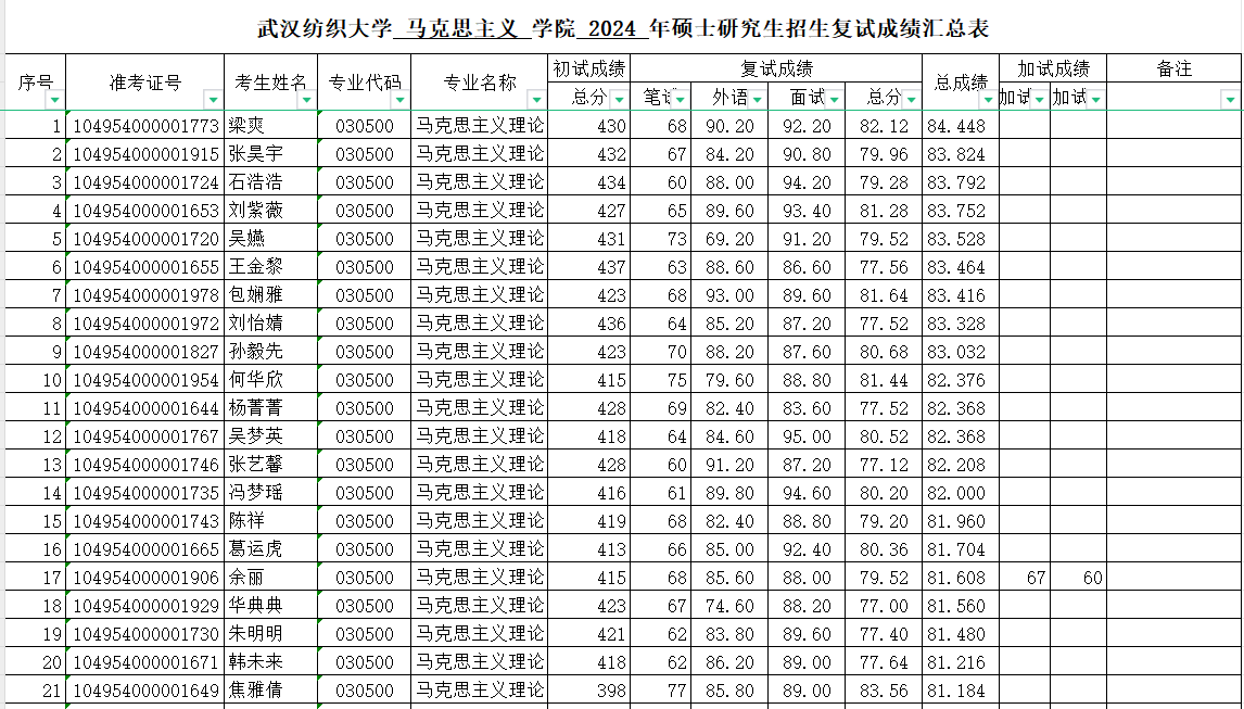 德赢AC米兰官网2024年硕士研究生招生复试成绩公示(第一志愿)