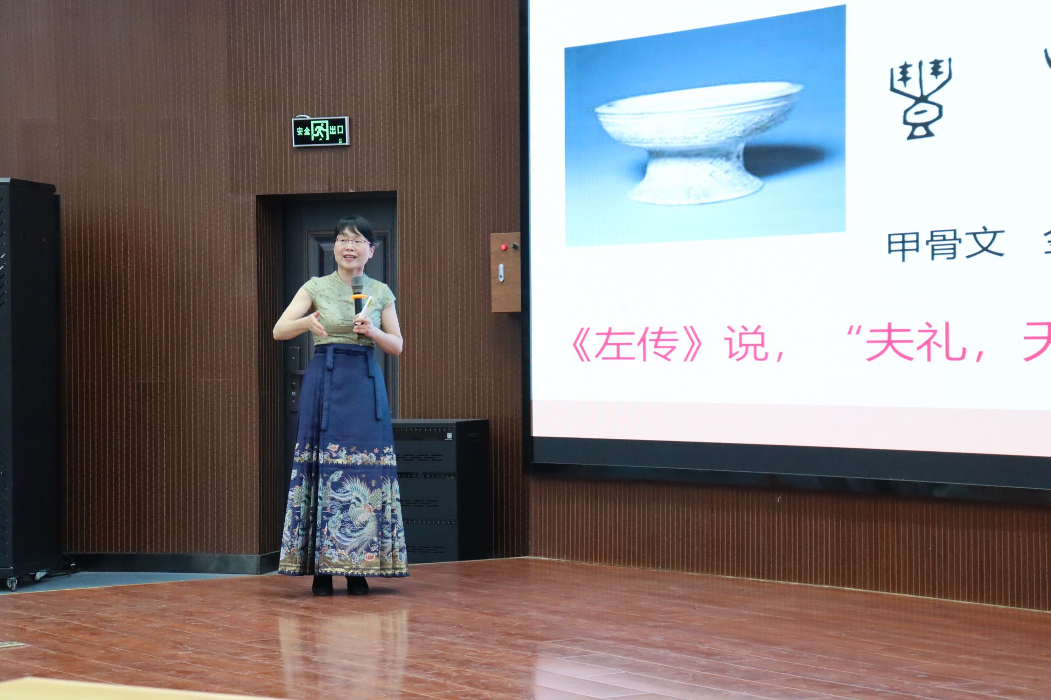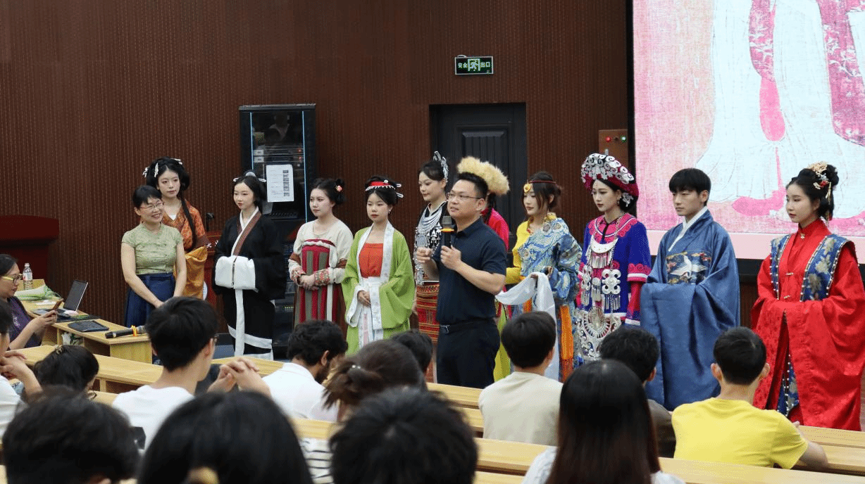 陶辉从“礼”这一中华文化核心切入,讲述了传统服饰的发展历程,展示了中国作为衣冠上国和礼仪之邦的精神符号。她指出,汉服热的兴起,正是文化自信的体现。陶辉通过不同朝代的服饰变迁,从先秦到民国,再到现代汉服复兴,每一段历史都展现了服饰与礼仪、文化的深厚关联。在课程中,她不仅讲述了汉服的历史变迁,还带领大家欣赏了中华民族多样的服饰文化。陶辉强调,通过了解中国服饰文化,学生们不仅能感受到传统服饰的美好,还能增强文化自信和民族自豪感,培养深厚的家国情怀。随后,陶辉还将视野扩展到全球,探讨了中国传统服饰对邻国的影响以及近现代以来中国服饰在世界范围内的流行。她指出,中国服装史是一部创新不断的历史,加强文明交流互鉴,构建东方服饰美学体系,对于推动中华文明的发展和人类社会的进步具有重要意义。
