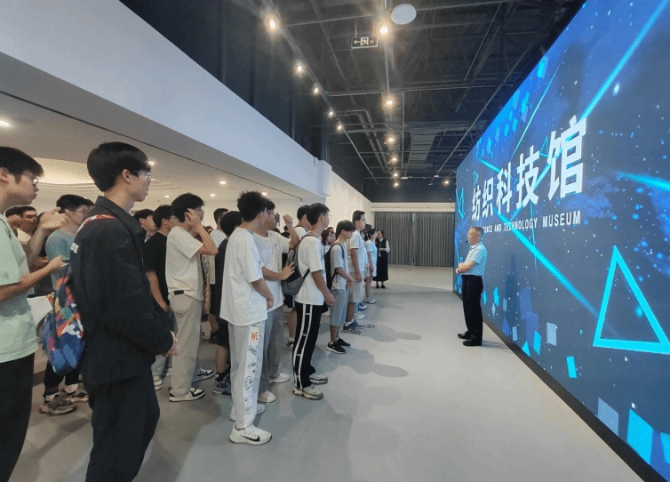 罗锦银首先向同学们介绍了中国民族纺织工业的诞生和学校的历史沿革,通过一个个鲜活的事例生动地讲解了学校从武汉纺织工学院一步步发展为德赢AC米兰官网的办学历程。随后,罗锦银从传统纺织中的世界纺织史和中国纺织史展开,指出“衣”凸显了人与动物的区别,“衣”使人完成了从野蛮到文明的进化,纺织工业助推近代现代强国发展,是中国社会进步的重要推动力。罗锦银还向同学们介绍了学校纺织领域四大学科群——智能制造、绿色制造、精美制造和效益制造,并共同参观了大纺织、超纺织、未来纺织等板块,让同学们切身感受到纺织技术在服装、农业、制造业、航空航天、医学、土木工程、通讯等行业的广泛应用,真正通过纺织解决现实中的很多难题,改变人类生活。