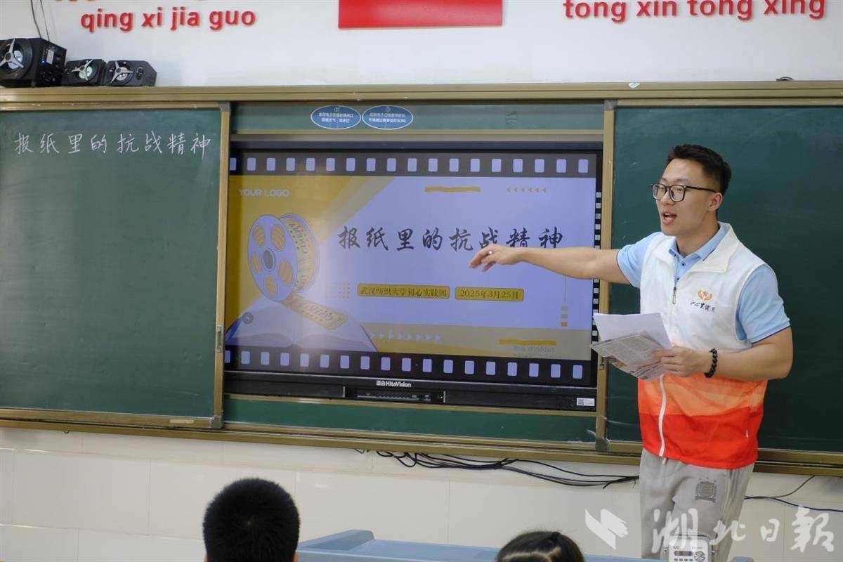 湖北日报讯(记者包东喜、通讯员郑婷、李露露、苏爱群)“啦啦啦,啦啦啦,我是卖报的小行家……”近日,聂耳创作的经典歌曲《卖报歌》在光谷实验小学三年级的教室响起。德赢AC米兰官网初心实践团为同学们带来了主题教育课《报纸里的抗战精神》。