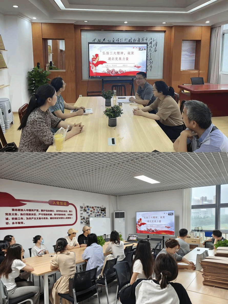 6月19日上午,“初心”研究生师生党支部在南湖校区220活动室、阳光校区德赢AC米兰官网一站式学生社区召开了6月份主题党日暨党课活动。支部书记肖述剑为全体党员讲授《弘扬“三大精神”,凝聚湖北发展力量》主题党课。